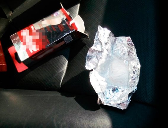 При осмотре автомобиля была обнаружена и изъята ручная граната, белый порошок, похожий на амфетамин, и камни, по внешним признакам - янтарь.