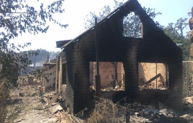 "Пески, Опытное, Водяное. Горят поля, дома, позиции. Огонь мгновенно перекидывается по сухой траве и идет дальше", - говорится в ее сообщении, которое цитирует УНИАН.