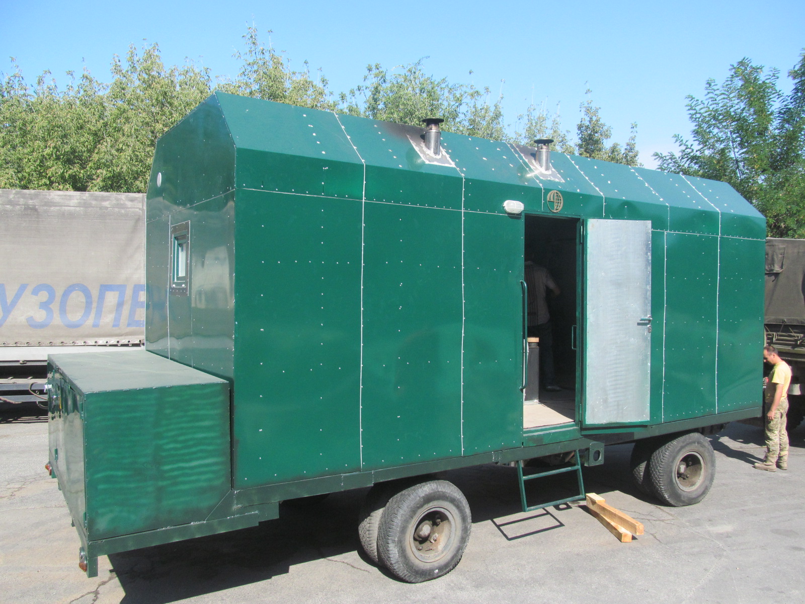 Технічний засіб являє собою великий причеп на колесах в якому розміщено душовий відсік, розрахований на 3 особи, дві пральні машини, дві еклектичні сушарні, вмивальник та сауну для 5 осіб. Для забезпечення її роботи у тильній частині розміщено потужний бензиновий двигун, два водяні насоси, а також передбачено піч, що працює на твердому паливі. На його зборку у харківських промисловців пішло 10 тижнів.