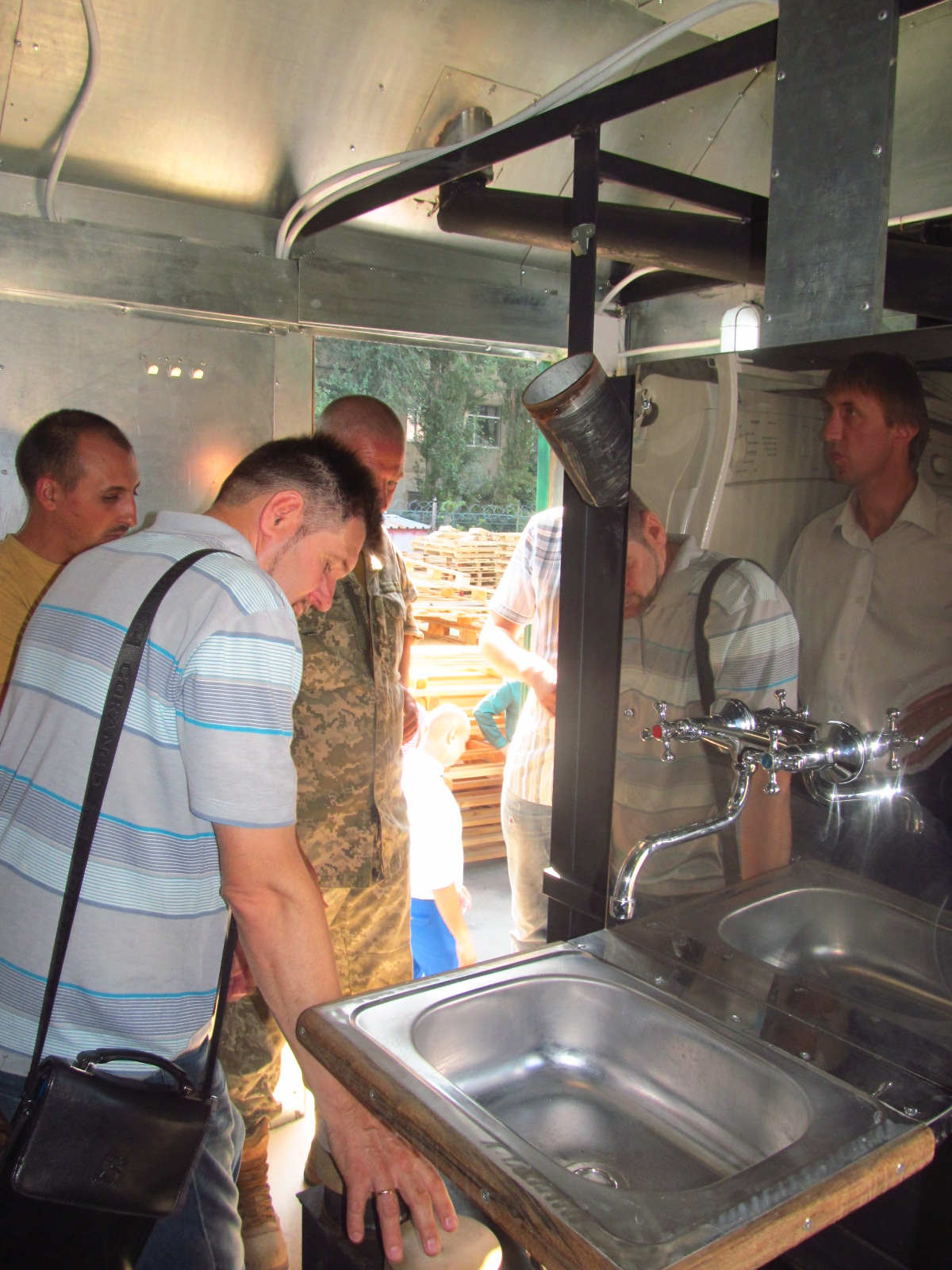 — Із початку проведення бойових дій на сході держави декілька наших співробітників добровільно пішли служити до війська. Тоді ж ми вирішили надавати посильну допомогу військовим цієї механізованої бригади. За час проведення АТО ми передали хлопцями бронежилети, тепловізори, багато комплектуючих. Нещодавно ми дізналися, що є необхідність посилити їхній тил, тому вирішили для військових створити цю багатофункціональну лазню, — пояснив генеральний директор підприємства Павло Кривонос.
