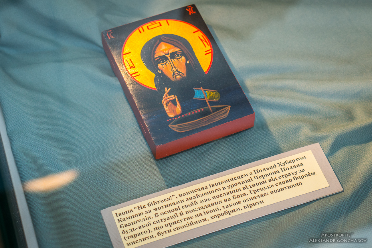 "А через две недели через отца Сергия Хуберт Кампа передал в музей икону – к этой Библии. Назвал ее "Не бійтеся". Видите? Лодка – это Украина. 12 точек – это 12 апостолов. Флаг наш… Ну, просто нет слов!", - рассказывает волонтер.
