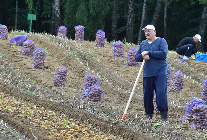 Свободный субботний день президент Беларуси Александр Лукашенко провел на своем участке, где копал картошку вместе с младшим сыном Николаем.