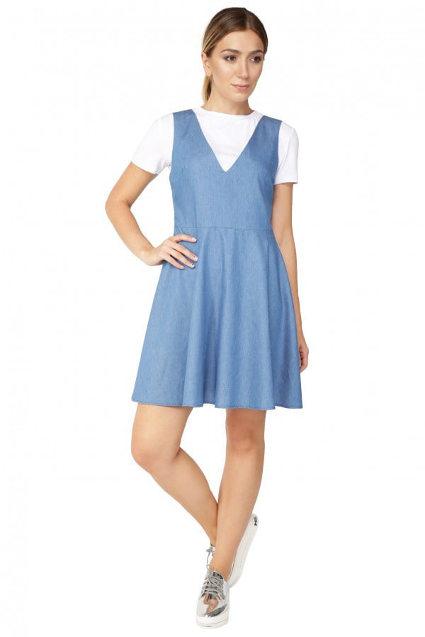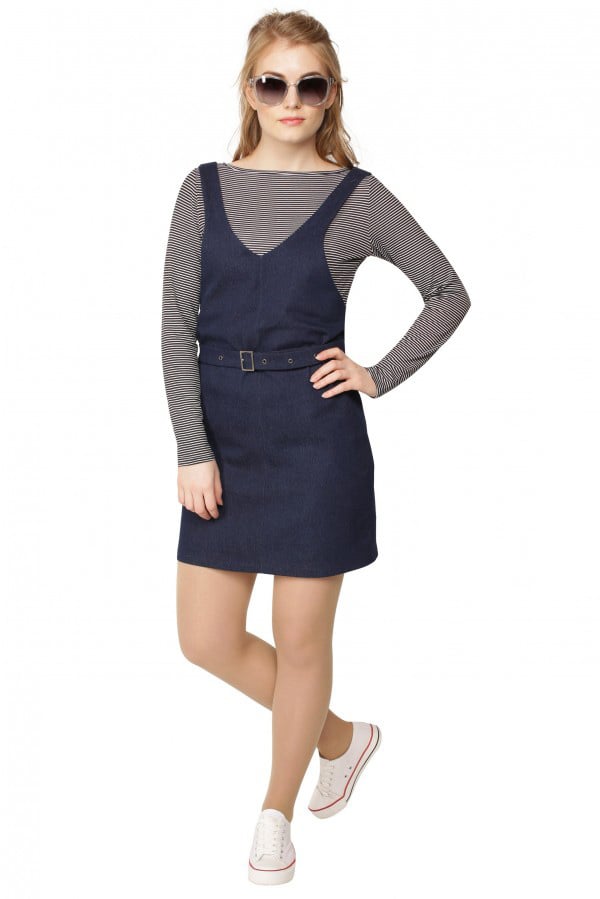 История сарафанов продолжается! Хотя этническая длинная женская одежда с пояском прямо под грудью, с позументами и тесьмой другого рода по центру снизу доверху и вдоль подола встречается разве что на фольклорных праздниках, близкая ей на виду постоянно. А в наше время, возможно, даже чаще, чем в последние годы. В какой-то степени потому, что наблюдается большой интерес к ретромоде, а рассматриваемое изделие — классика, особенно в полукомбинезонном исполнении, когда средней ширины бретели пришиты или прицеплены к прямоугольной или трапециевидной передней части. Сшитая из плотной ткани черного цвета или из денима оттенка индиго она вполне может претендовать на статус одного из символов моды 20 века.