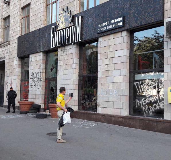«Толстосумы-владельцы магазина «Эмпориум» в начале улицы Грушевского тихонько уничтожили революционные патриотические граффити, которые продержались на стенах дома почти 3,5 года. Уже не боятся. Уже думают, что можно. Но ошибаются», - говорит Высоцкая.