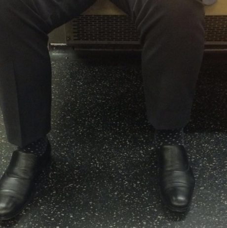 Как пишет Medialeaks, обыкновенные носки превратили мужчину в человека-невидимку. На снимке кажется, что у него есть только брюки и туфли. Из-за одного цвета носков и пола в вагоне ткани не видно. Таким образом, его ноги слились с фоном.