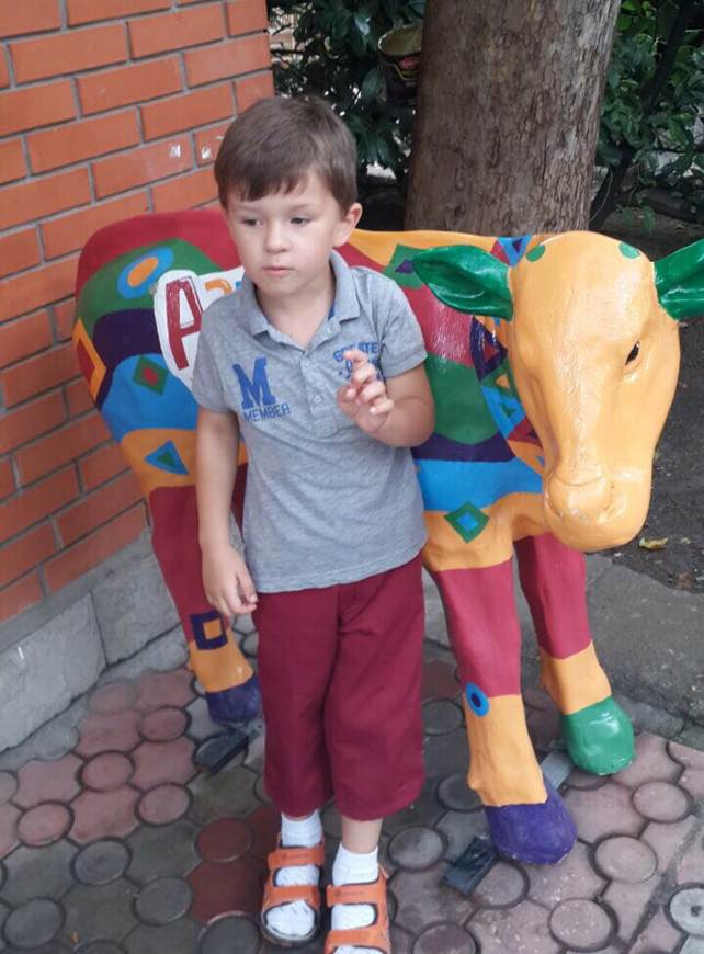 Мальчику Данилу четыре года. Худой, рыжие волосы, рост - 110 см. Был одет в серые футболку и шорты, оранжевые босоножки и голубые носки.