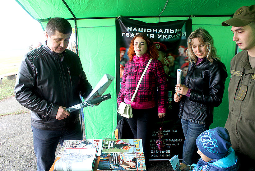 Багато корисної інформації люди могли побачити в агітаційному наметі про соціальний та правовий захист військовослужбовців та членів їх сімей, фінансове забезпечення, інформація про історію створення частини, а також про участь бійців Нацгвардії в анти терористичній операції на Сході нашої країни.