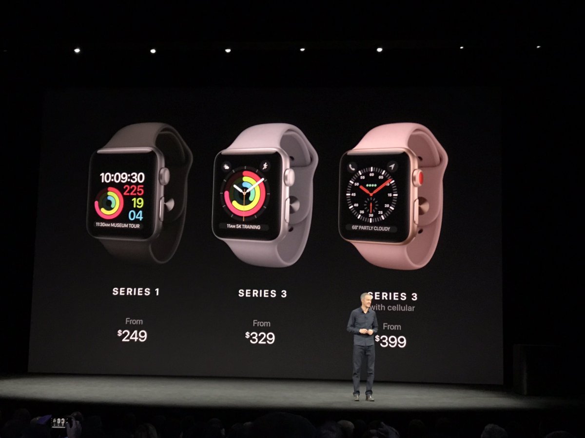 Во вторник была также представлена новая линейка умных часов Apple Watch, которые, по словам Тима Кука, уже стали самой популярной маркой часов в мире, и новые модели телевизионных приставок Apple TV.