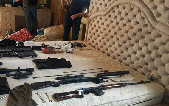 В частном доме был обнаружен целый арсенал оружия и боеприпасов. Согласно сообщению областной полиции, у подозреваемых изъяли: самодельное взрывное устройство, автомат Калашникова АК-74У, снайперскую винтовку, винтовку иностранного производства ТИККА, три пистолета марки Глок, пистолет Макарова и более 500 патронов к оружию, 6 гранат, глушители, тепловизоры, приборы ночного видения.