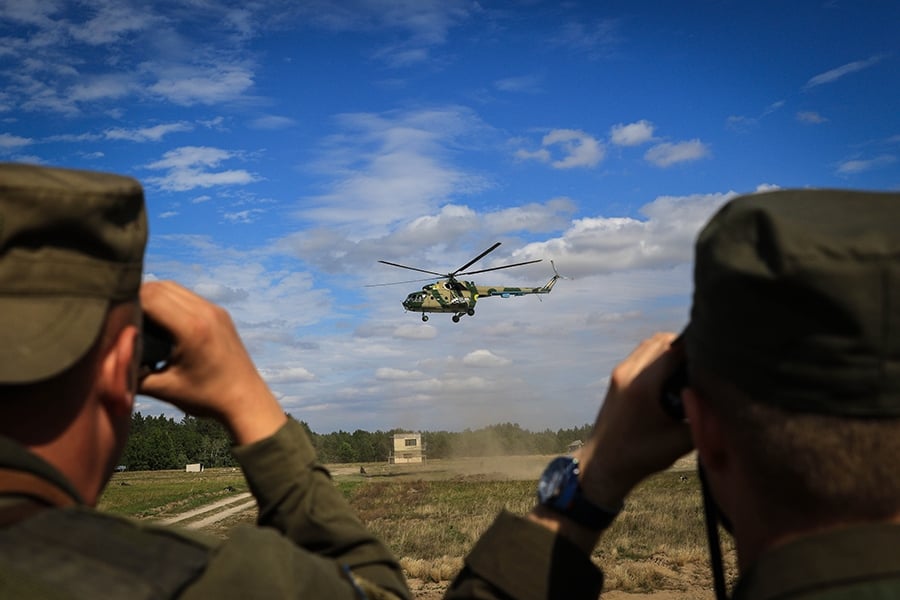 Окрім роти резервістів, у навчаннях взяли участь бійці окремого загону спеціального призначення Північного Київського територіального управління НГУ. Підсилювали гвардійців також розрахунки 82-мм мінометів, зенітних установок ЗУ-23-2, екіпажі броньованих машин «Козак» та бойових танків Т-64 із різних оперативних частин та з’єднань НГУ. Підтримку з повітря наземним силам надавали екіпажі бойових гелікоптерів.