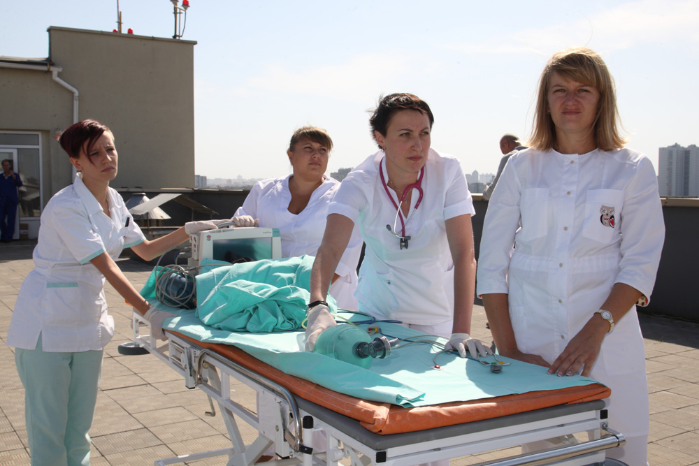 Вертоліт здійснив посадку прямо на даху інституту, повідомляє прес-служба ДСНС України.