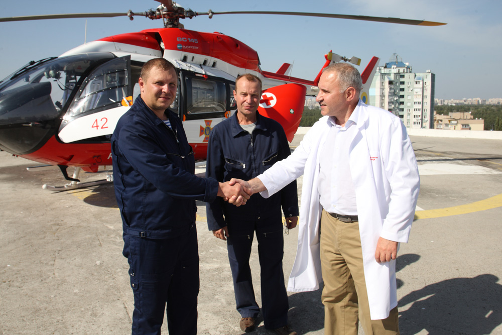 Пацієнтку зустрічав особисто директор Інституту серця, лікар-кардіохірург - Борис Тодуров. За його словами, на вертолітний майданчик закладу вперше за десять років здійснена посадка авіаційної техніки з важкою пацієнткою на борту. Він щиро подякував екіпажу ДСНС за допомогу у транспортуванні дівчинки. «Дуже багато часу витрачається на те, щоб перевезти до нашого Інституту важкохворих пацієнтів наземним транспортом. Завдяки можливості використовувати авіацію та завдяки тому, що є така техніка у нас в Україні — ми можемо врятувати безліч життів, для яких час має вирішальне значення», - зауважив Борис Тодуров.