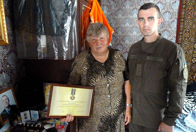 Гвардійці також зустрілися з мамою солдата Галиною Твердохліб, с собою бійці привезли відзнаку від Президента України «За участь в антитерористичній операції», якою її сина було нагороджено посмертно.