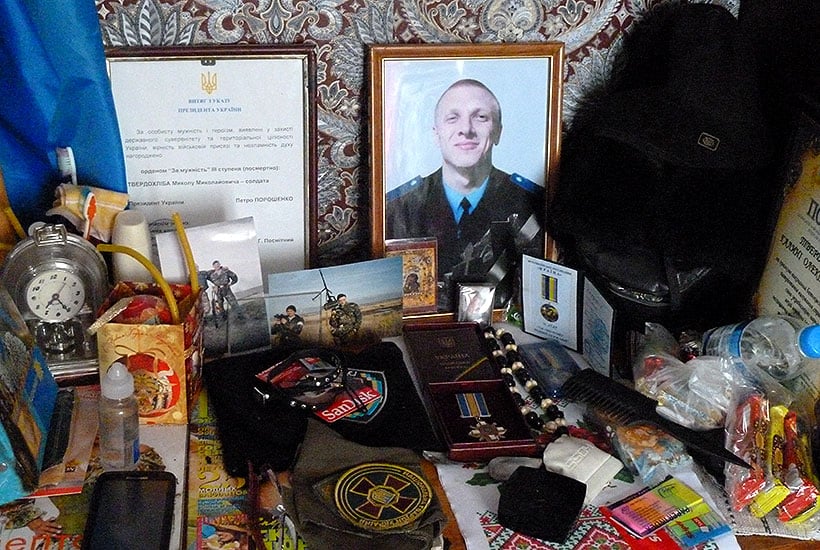 Але то тільки гарний пам’ятник, який не в змозі допомогти матері перекрити дах будинку, що протікає та вирішити питання з дровами на зиму. Галина Твердохліб при зустрічі з військовослужбовцями спецпідрозділу ніколи про це не скаржиться але сліди від води на стелі будинку та порожній дров’яний сарай говорять самі за себе. При кожній зустрічі військовослужбовці підрозділу завжди чують від неї одну фразу: «Повертайтеся живими».