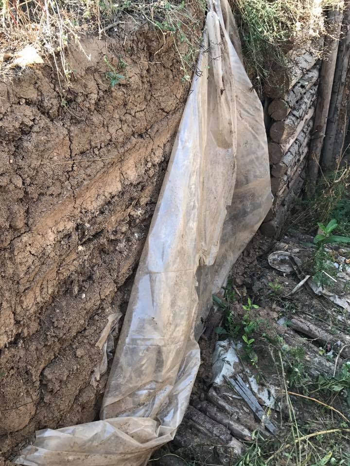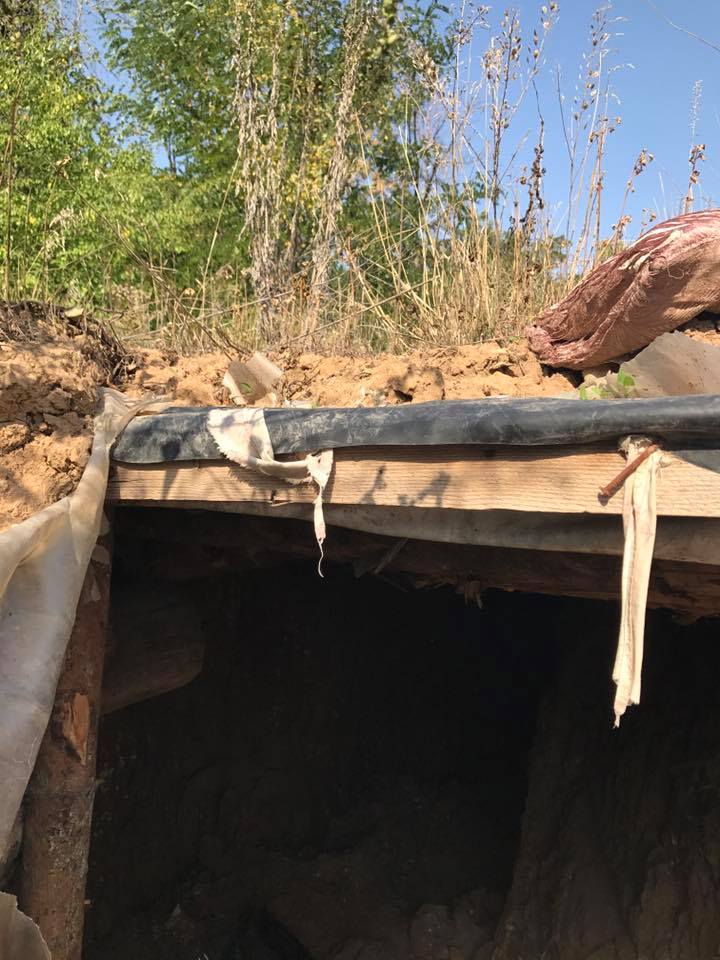 "Те, за що заплачено мільярди гривень. Те, що на ділі є імітацією опорного пункту: окопи без кріплення, перекриття бліндажів з гілок і 5 - 10 см ґрунту, броньовані двері та вікна вкрадені", - констатував він.