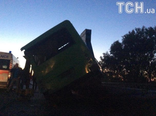 Очевидці кажуть, у громадському транспорті перебували близько 20 пасажирів, маршрутка вщент розбита. Загиблих у події немає.