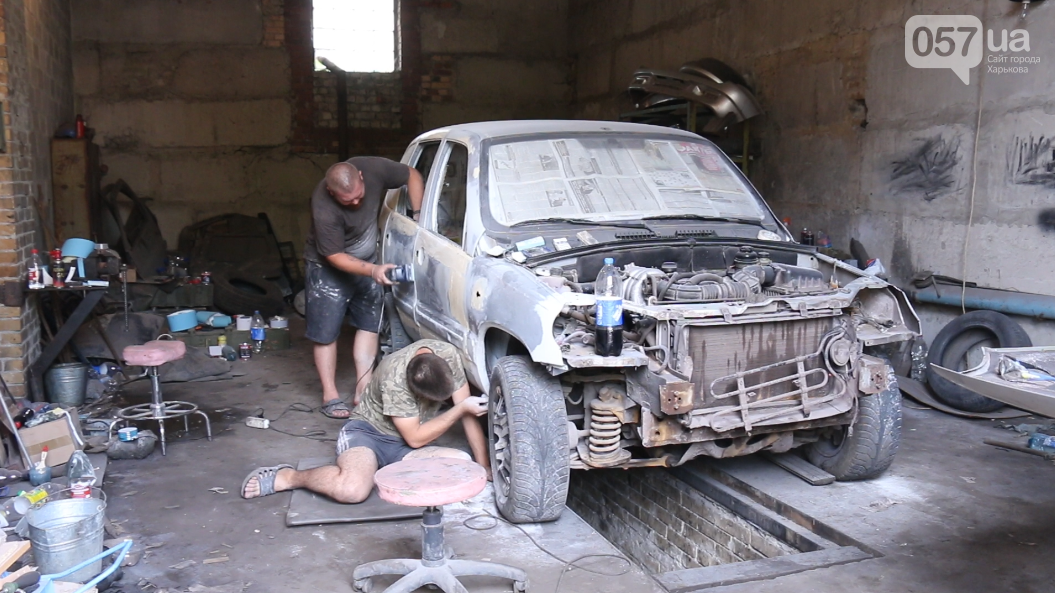 То что бойцы не могут сделать сами, им делают на СТО. Зацепив ее за другую такую же самосваренную машину, бойцы буксируют будущее авто к автослесарям.
