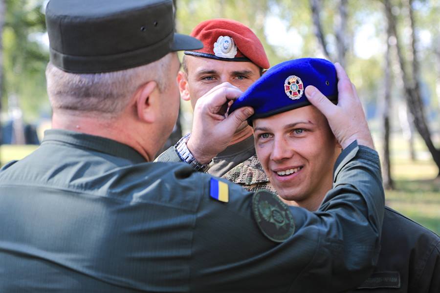 Шестеро найпідготовленіших військовослужбовців з 50 претендентів відібраних з усіх військових частин Національної гвардії України склали серйозний кваліфікаційний іспит і отримали берет з відзнакою нового зразка – синього кольору. В урочистій обстановці цю символічну нагороду їм особисто вручив командувач Національної гвардії України генерал-полковник Юрій Аллеров.