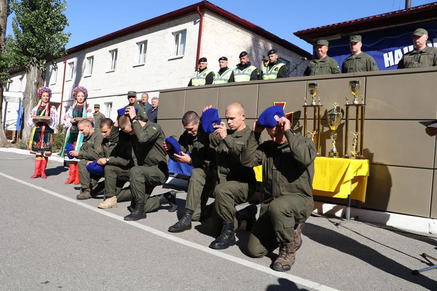 Зазначимо, що у зв'язку із запровадженням в НГУ нових зразків форми одягу гвардійці, які складали кваліфікаційний іспит цього року вперше отримали право носити берет синього кольору з відзнакою замість крапового.