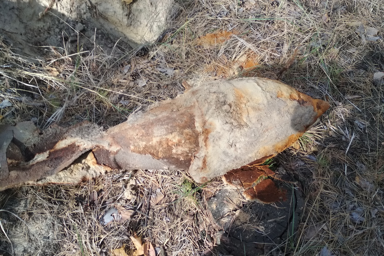 Бомбы ФАБ-50 времен Второй мировой войны весом по 50 кг каждая случайно обнаружили обычные грибники. Ржавые металлические предметы торчали из-под земли.