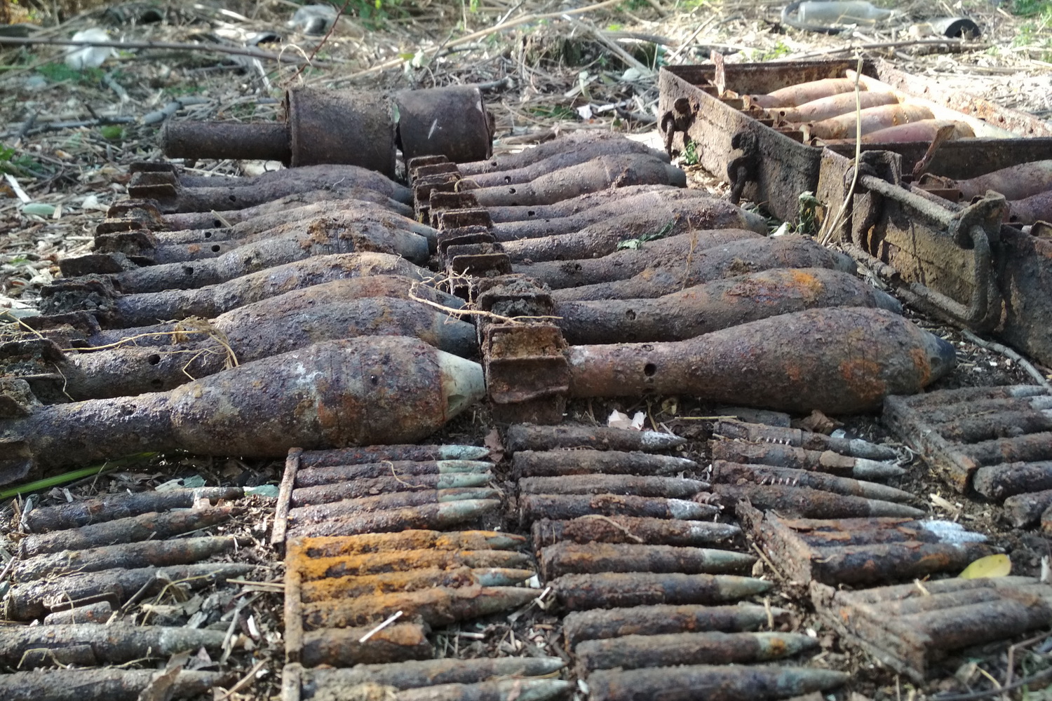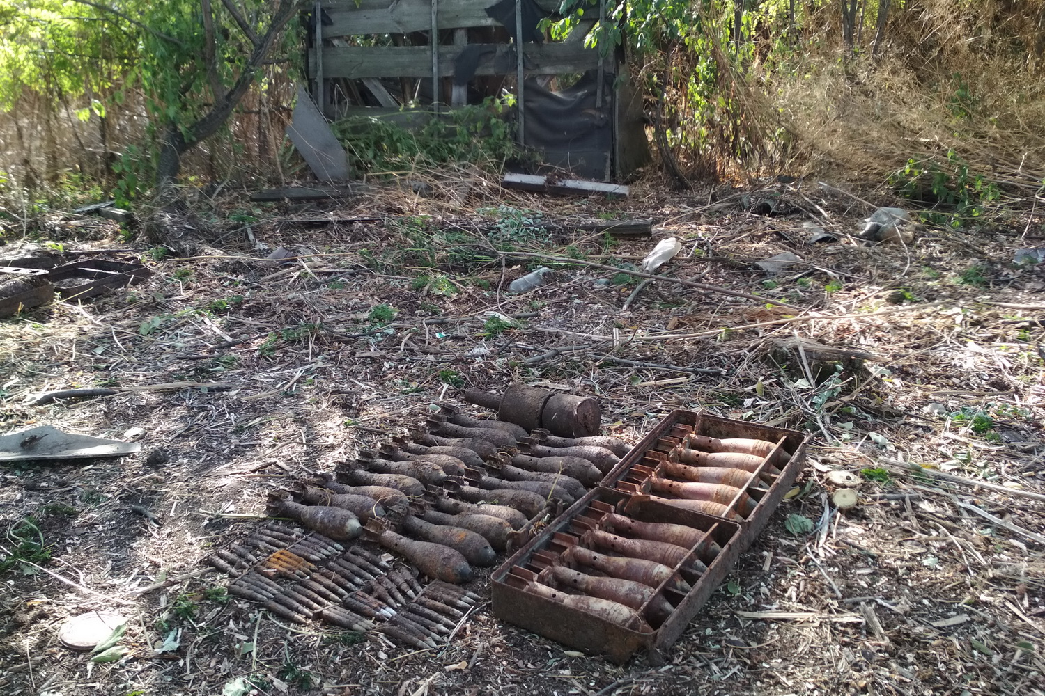 Кроме того, в этот же день пиротехническая группа также провела разминирование устаревших боеприпасов, обнаруженных на заброшенном дворе в сел. Довгенькое Изюмского района. Во время уборки от мусора соседи нашли один металлический предмет, похожий на минометную мину. Пиротехники провели обследование прилегающей к месту находки территории с помощью металлоискателя и обнаружили на глубине около полуметра еще 29 подобных минометных мин диаметром 50 мм, 2 ручных гранаты и 50 патронов к стрелковому оружию.
