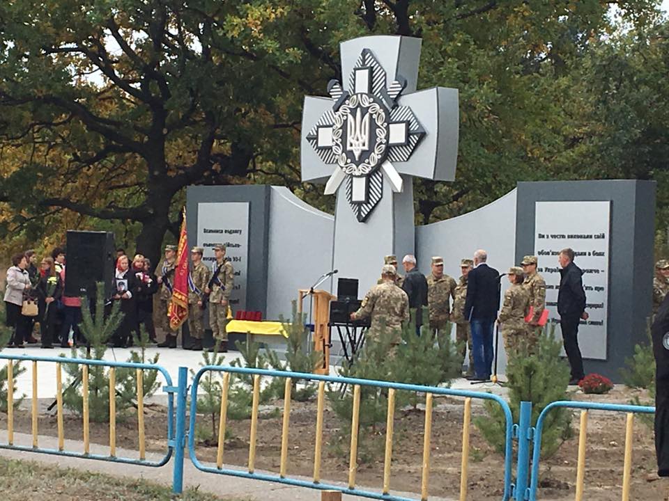 "Сегодня открытие памятника погибшим в 93 ОМБр. На памятник собирали деньги военнослужащие и волонтеры. Ночью памятник облили краской, баннер бригады порезали ножом. В городке написали "смерть укропам" и "слава днр". Война она везде", - написал волонтер.