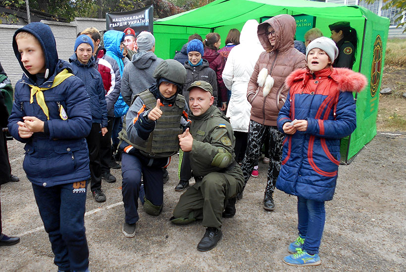 Позже, в помещении учебного заведения, ребятам показали сюжеты и ролки об истории Национальной гвардии Украины и о то, как гвардейцы несут свою нелегкую, но почетную и уважаемую обществом службу