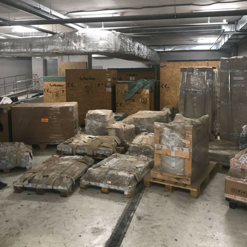 Це - запаковане радіологічне обладнання, яке вже щонайменше 3 роки мало б працювати в Охматдиті та рятувати життя онкохворих дітей.