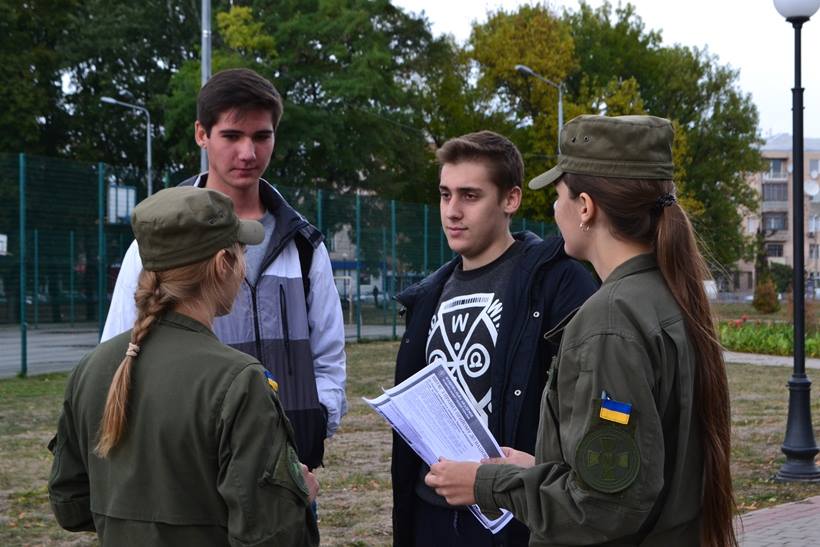 В парке «Майдан защитников Украины» курсанты и офицеры командно-штабного факультета Академии рассказали школьникам, лицеистам и гражданской молодежи Харькова об особенностях нашего учебного заведения и перспективах, которые они могут получить во время учебы в Национальной академии Национальной гвардии Украины.