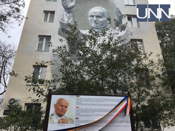 В воскресенье 15 октября в Печерском районе столицы состоялось торжественное открытие улицы Иоанна Павла II (бывшая П.Лумумбы) и мурала с изображения Папы Римского.
