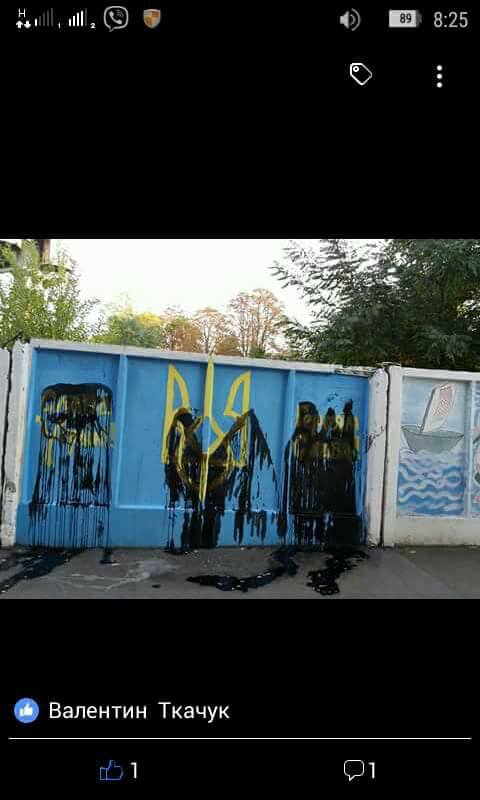 Это х@йло в течении полутора лет в городе Черноморске, заливал отработанным маслом и черной краской Герб Украины, между второй и третьей школами. Это происходило два-три раза в месяц.