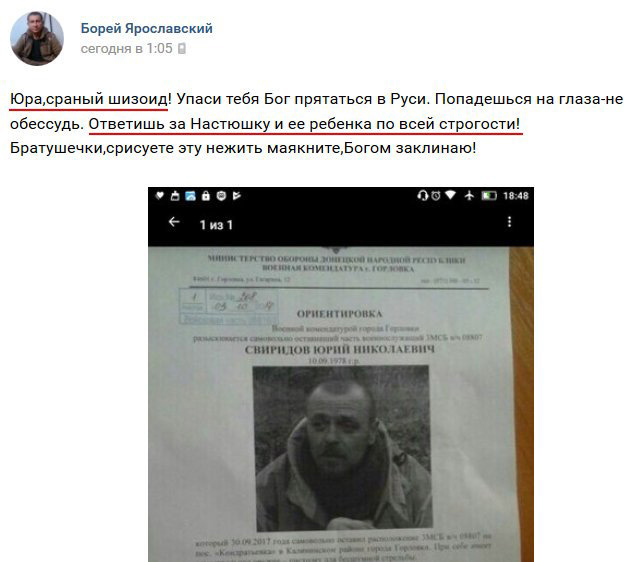 Командир 3-го батальона 7-й бригады 1-го корпуса ВС РФ на Донбассе Свиридов был объявлен в «ДНР» в розыск.