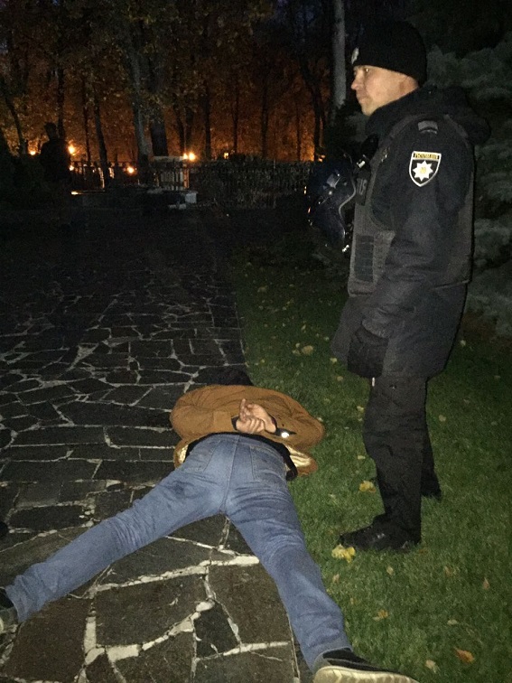Дана подія належним чином зареєстрована у Журналі єдиного обліку заяв та повідомлень Печерського управління поліціі. Зараз проводиться перевірка для встановлення особи затриманого та обставин правопорушення, за результатами якої буде надана правова кваліфікація події.