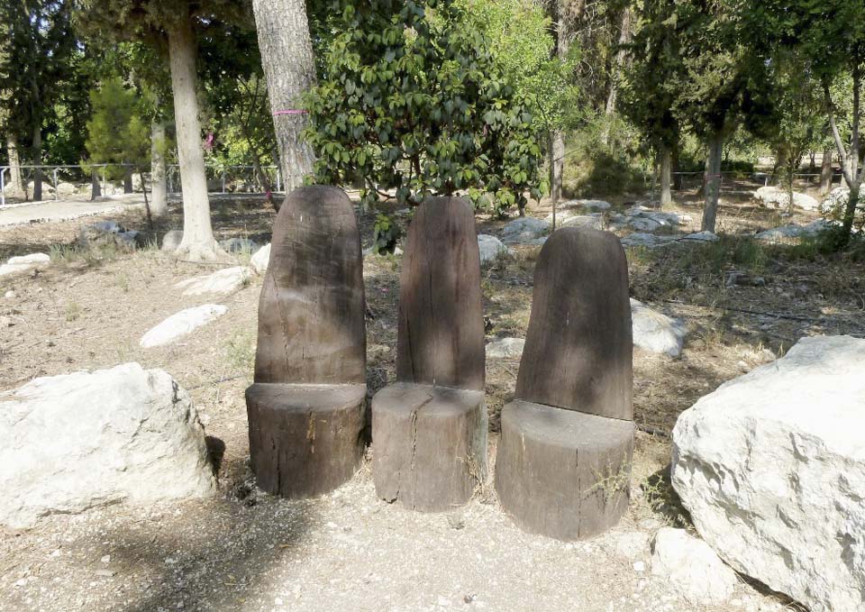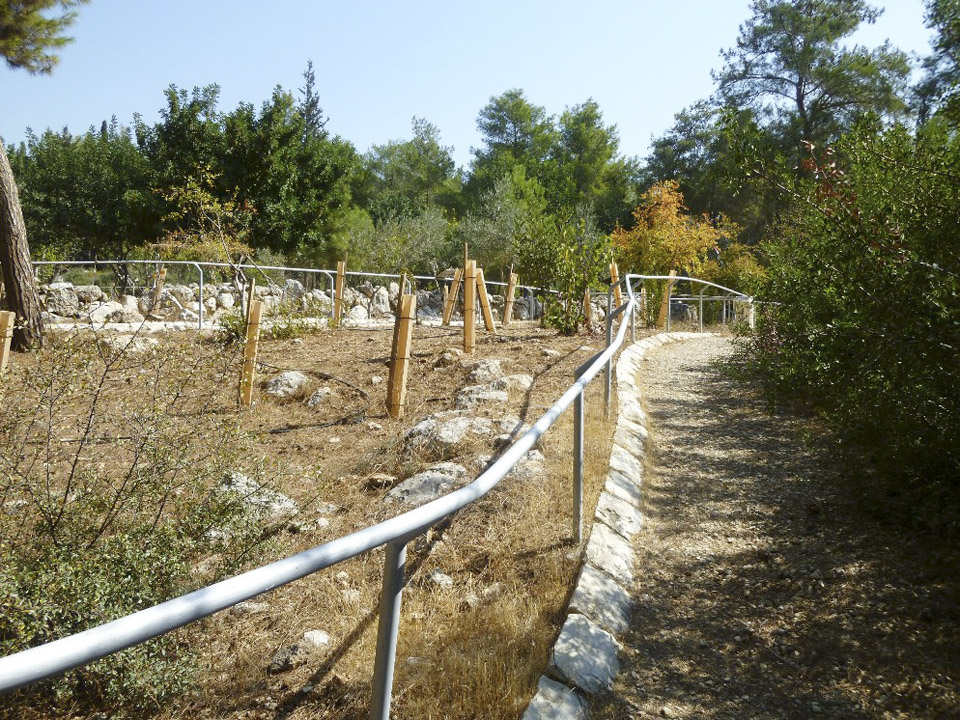 Одна из табличек рассказывает об иерусалимской сосне, другая о цикламене, цветущем зимой в лесу, а также о гранатовом дереве, оливе, виноградном прессе и истории фермы.