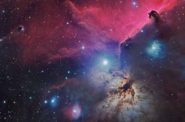 Как сообщает Naked Science, на изображении разместились эмиссионная туманность NGC 2024, также известная как туманность Пламя, туманность Конская голова и еще одна эмиссионная туманность под названием IC 434. Все эти туманности расположены в созвездии Ориона в дальнем восточном поясе Ориона.