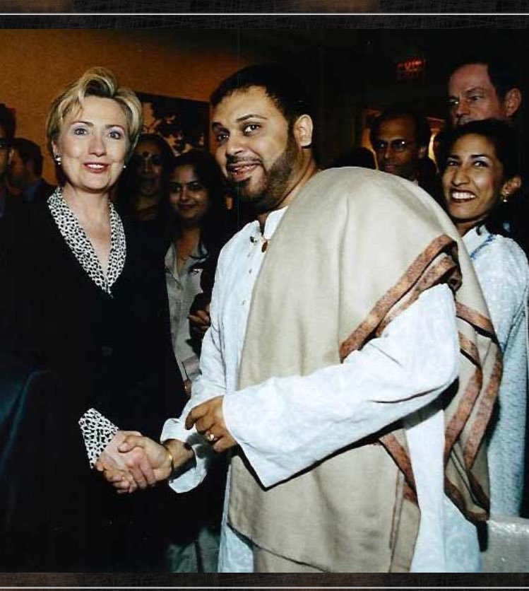 На самом деле, это фото - фейк, смонтированный на основе реального снимка, на котором запечатлены Клинтон и индийский певец Шубхашиш Мукхерджи. Фотография была сделана 20 мая 2004 года на встрече Вашингтонского азиатского общественного центра в отеле Fairmont, а не в Белом доме.