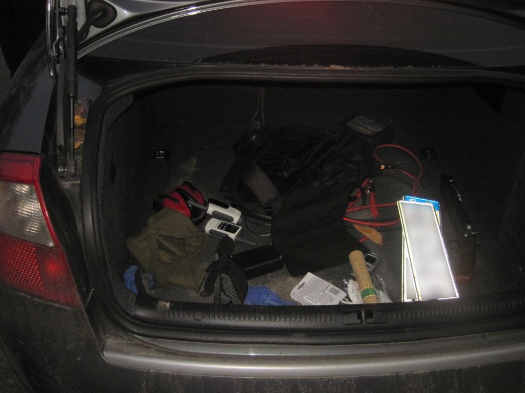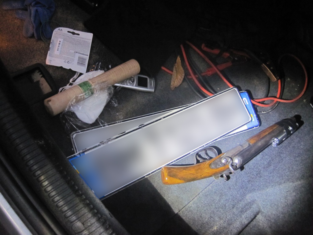В подальшому спільною міжвідомчою групою, до складу якої увійшли представники Держприкордонслужби, Національної поліції та СБУ, під час огляду транспортного засобу в багажному відділенні було виявлено рушницю з обрізаним дулом марки «БОБ-52» з двома набоями 16-го калібру, 2 радіостанції, 2 балаклави, комплект номерних знаків та рюкзак, в якому знаходилися 2 набої до обрізу 16-го калібру та 4 набої калібру 9 мм травматичної дії.