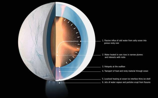 Согласно моделированию, приливные силы Энцелада приводят к возникновению трения между фрагментами ядра, в результате чего выделяется тепло.