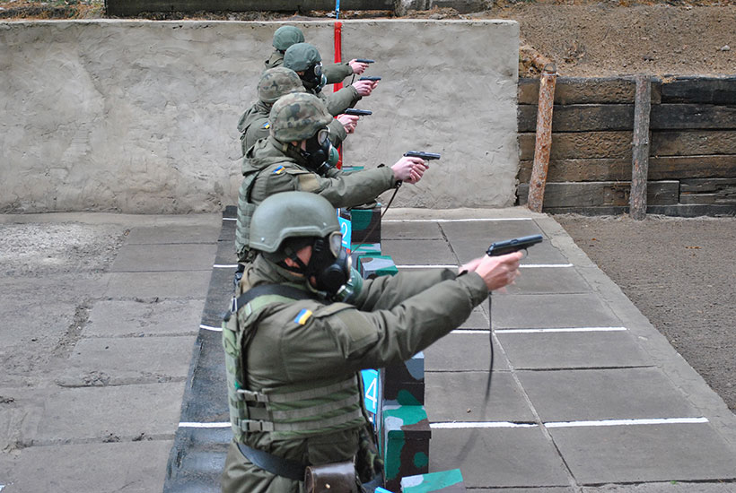 Офіцери, військовослужбовці за контрактом та строковики виконували вправи навчальних стрільб зі штатної зброї. Їм передували перевірка теоретичних знань, де кожен мав доповісти заходи безпеки під час проведення стрільб. В процесі здачі вогневої підготовки гвардійці показували вміння з розбирання та збирання зброї, спорядженню магазину для автомата. Військовослужбовці управління стріляли з пістолета Макарова в новому тирі військової частини 3005.