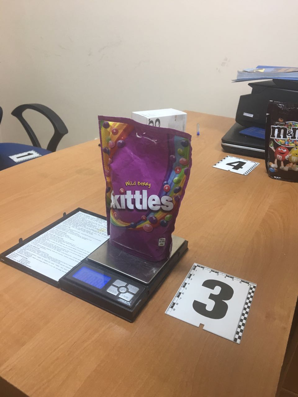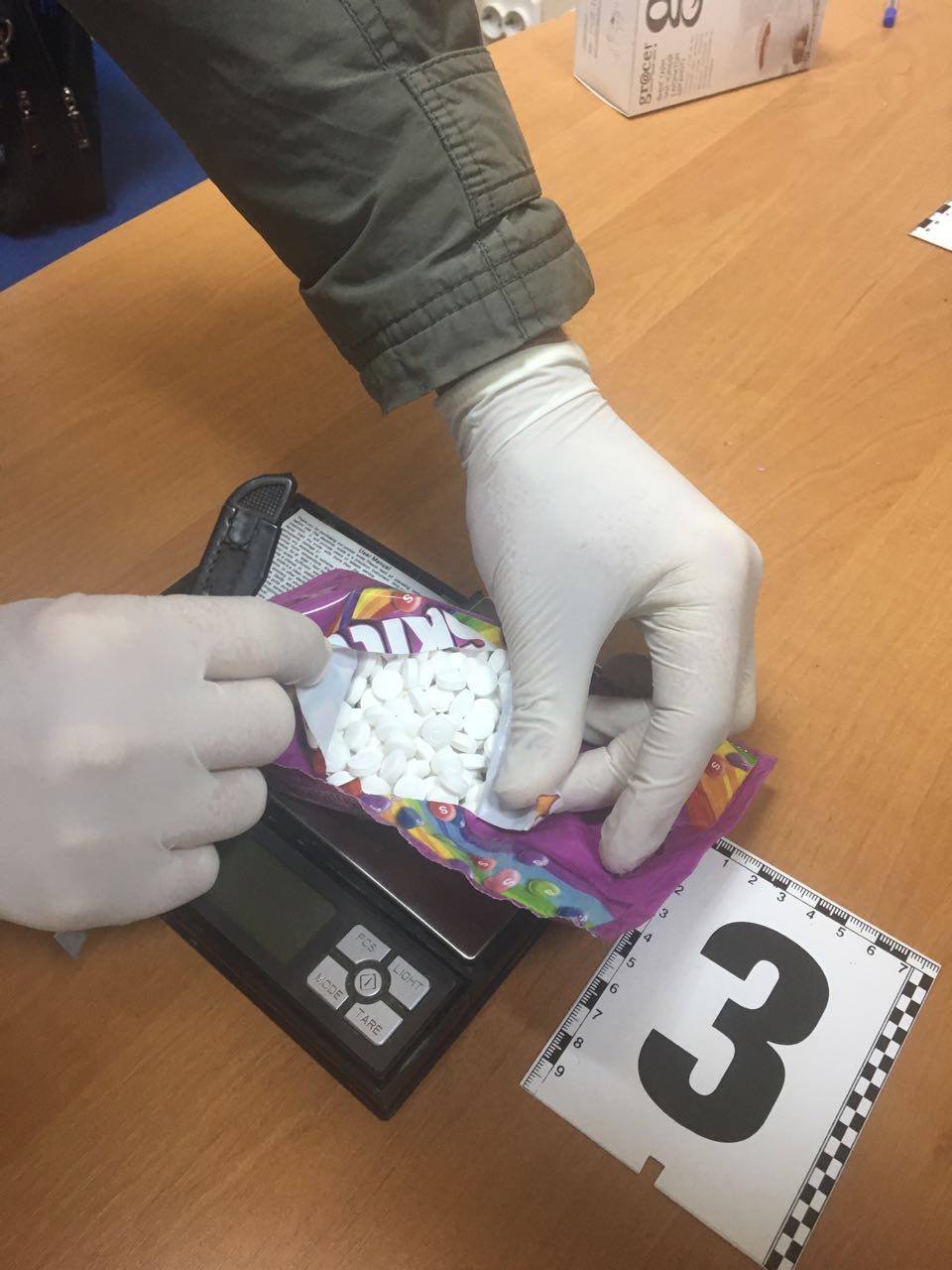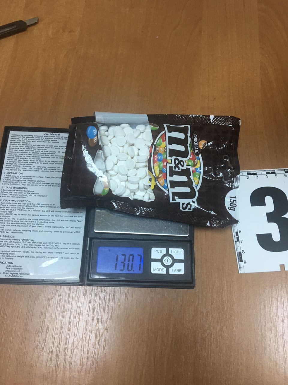 В результаті огляду, в сумці громадянина України 1986 року народження - пасажира цього автобуса, було виявлено понад 300 грамів психотропних пігулок. Останній вдався до хитрощів, адже запакував таблетки, які заборонені до переміщення через кордон, в упаковки з-під цукерок «M&Ms» та «Skittles». Для цього чоловік висипав цукерки та наповнив упаковки таблетками. В одній із упаковок знаходилось 179 грамів таблеток, в іншій - 130 грамів загальною кількістю 250 штук.