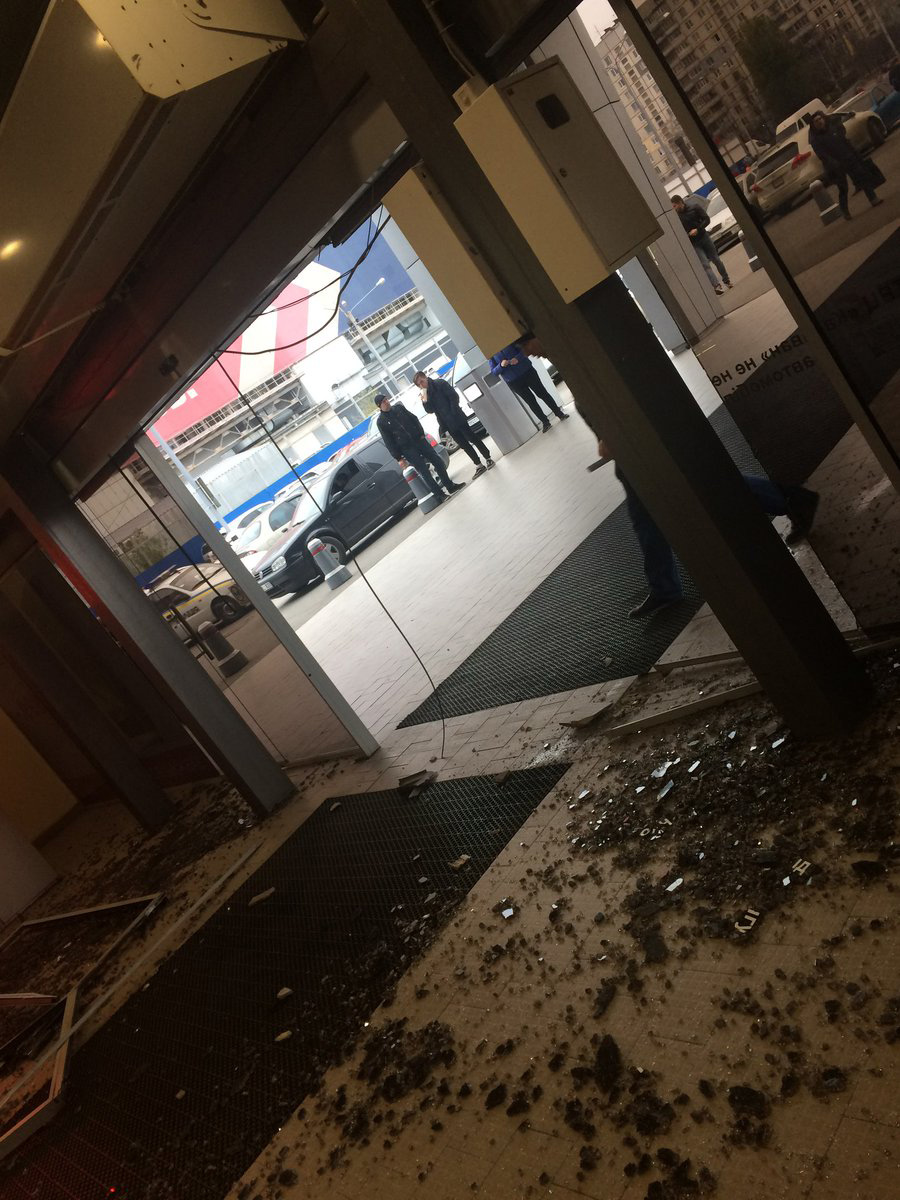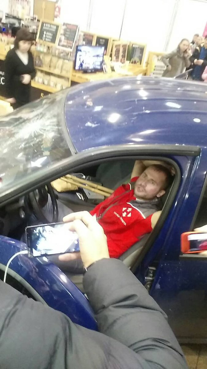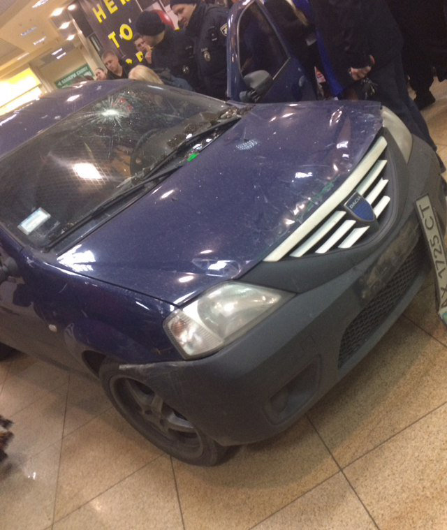 В торговый центр на ул. Героев Труда "Караван" въехал автомобиль Dacia. Машина разбила стеклянные двери и затем начала двигаться в сторону магазинов и развлекательных заведений.