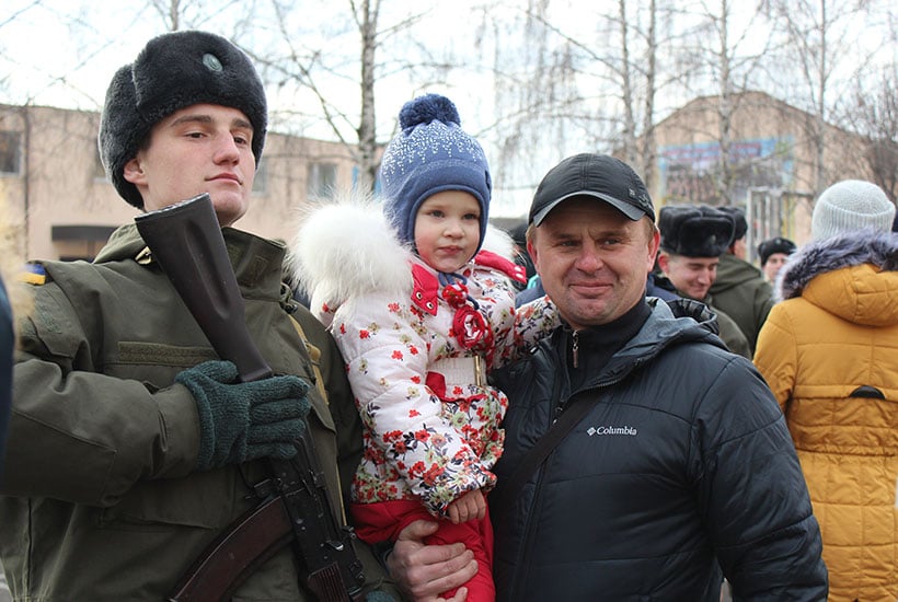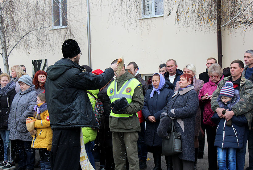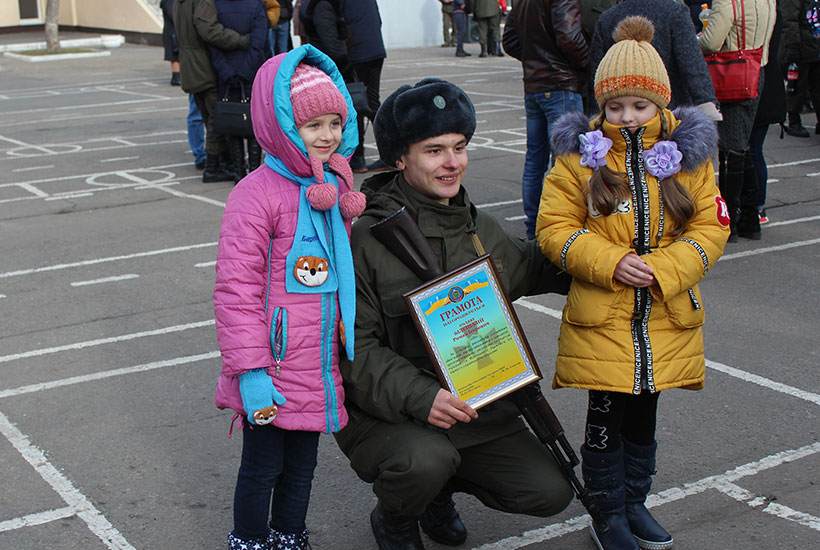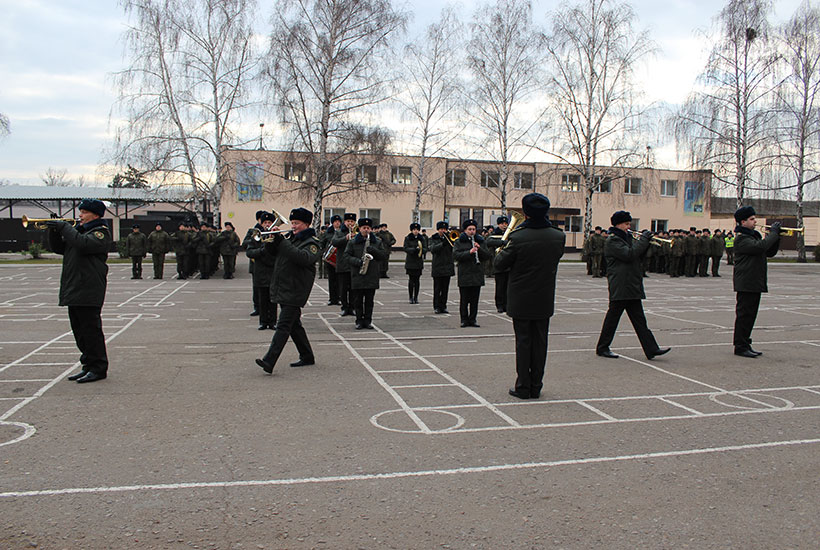 Привітав присутніх своїм дефіле військовий оркестр частини під керівництвом старшого прапорщика Володимира Столярова, а капелан отець Артемій благословив молодих воїнів на успішне несення ратної служби, побажав міцного здоров’я, Божої помочі та окропив святою водою.