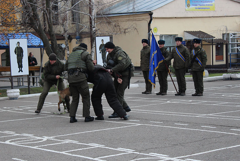 Старший сержант Віталій Будник зі службовою собакою «Лорд» продемонстрували елементи загального та циркового курсу дресирування, а також процес затримання злочинця.