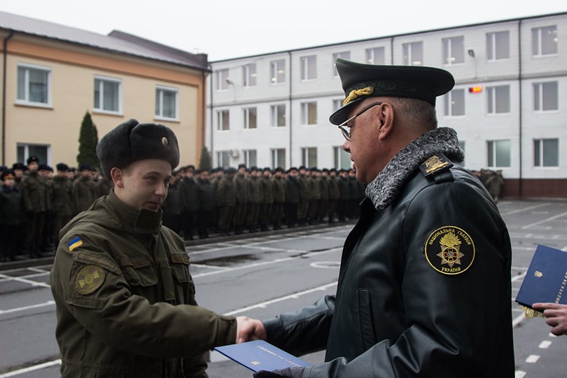«Півтора роки служби та навчання у Національній академії стали школою гарту та мужності для Вас. Саме тут Ви отримали глибокі знання з бойової та спеціальної підготовки. Переконаний, що уміння, навички, професіоналізм, здобуті в процесі проходження служби, неодмінно знадобляться в повсякденній діяльності. Поздоровляю Вас з успішним завершенням служби. Бажаю міцного здоров'я, щастя та благополуччя», - зазначив він.