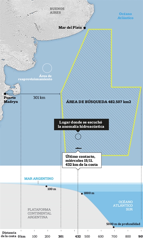 Сейчас спасателям удалось проверить более 500 тыс. кв км. водной поверхности на предмет наличия следов подлодки, однако эти поиски ни к чему не привели. Однако накануне ВМС Аргентины сообщили, что в том районе, где в последний раз выходила на связь подлодка, была зафиксирована гидроакустическая аномалия. На поиски в этом районе уже были направлены несколько судов.