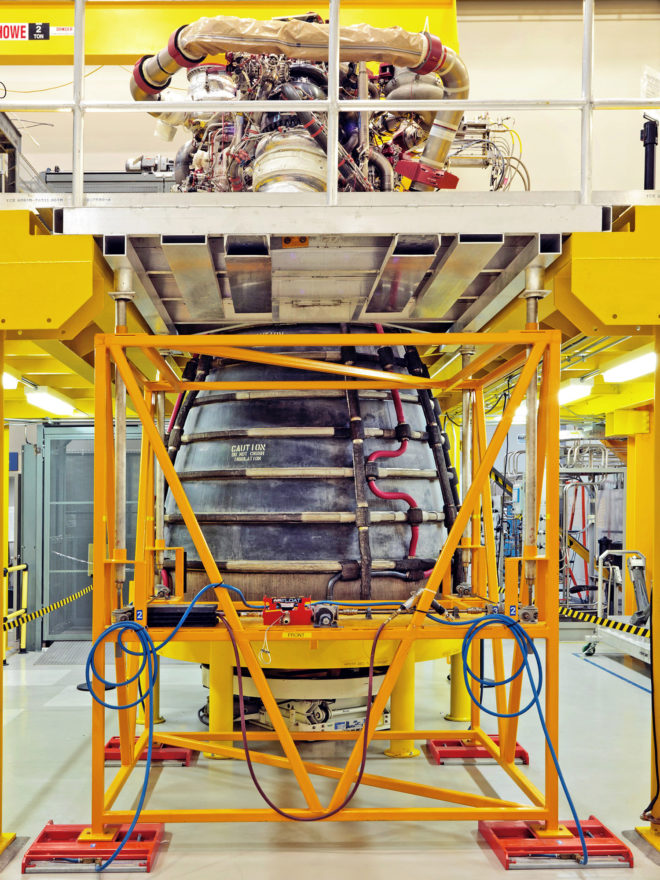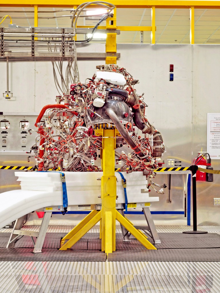 Для того, щоб отримати допуск до польоту, тестову версію двигуна RS-25 кріплять гвинтами до випробувального стенду NASA і запускають на 500 сек у такій же послідовності, як і при штатному запуску.