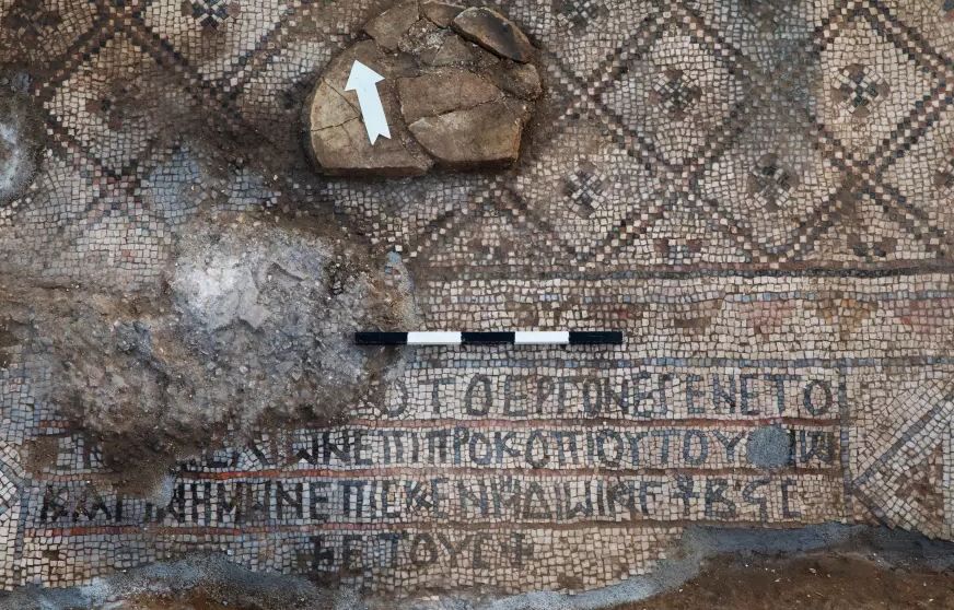 Мозаика включает в себя четырехстрочную надпись на древнегреческом языке, посвященную строителю - епископу Прокопию, а также год возведения постройки: "Господней милостью эта работа завершена на деньги Прокопия, святейшего епископа, в месяце Диос, год 292". По словам археологов, упомянутый год отвечает 539 году нашей эры, и это самый ранний пример использование грузинского календаря в Израиле.