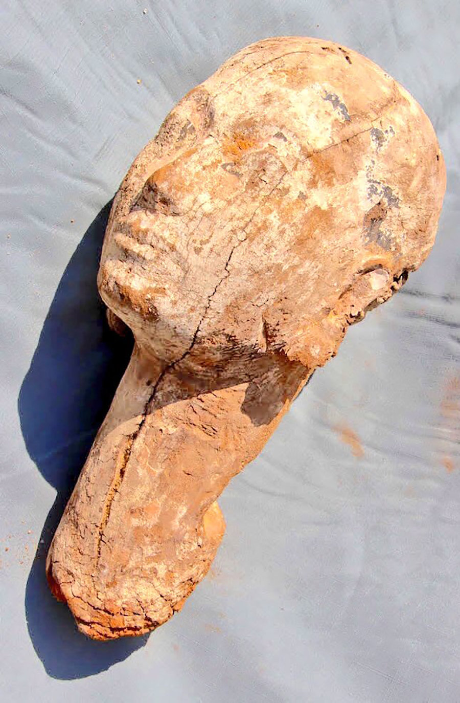 "Мы нашли эту голову примерно в том же слое у восточной стороны предполагаемой пирамиды Анкхнеспепи II, где мы нашли на прошлой неделе пирамидион. К сожалению, бюст находится в достаточно плохом состоянии и его придется восстанавливать, прежде чем мы сможем показать его публике", — заявил Филипп Колломбер (Philippe Collombert), руководитель раскопок.