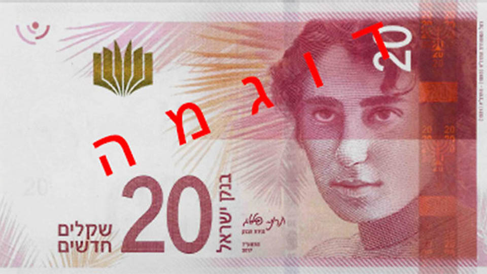 На новой 20-шекелевой купюре изображена известная израильская поэтесса Рахель Блювштейн на фоне пальм и озера Кинерет. Там же размещены несколько строчек из ее стихотворения "Мой Кинерет родной! Ты-то — был? Или сон это мой?"