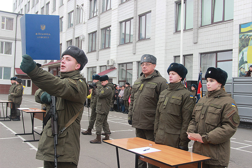 Юнаки, які пройшли заняття на навчальних зборах та отримали бойову зброю, клялися бути вірними і відданими народу України, сумлінно і чесно виконувати військовий обов'язок. На церемонію прийняття присяги були запрошені батьки та рідні гвардійців, які із захопленням спостерігали за військовим ритуалом. Привітання для солдат від батьків та командирів, виконання державного гімну України та постріли козацької гармати є невід’ємною частиною свята складання військової присяги.
